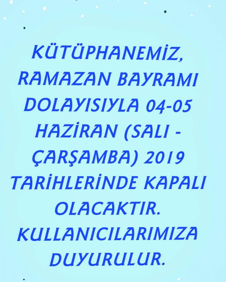 Ramazan bayramı tatili 3 haziran 2019 pazartesi günü saat 13.00'te başlayıp 6 haziran 2019 perşembe günü sona erecektir.